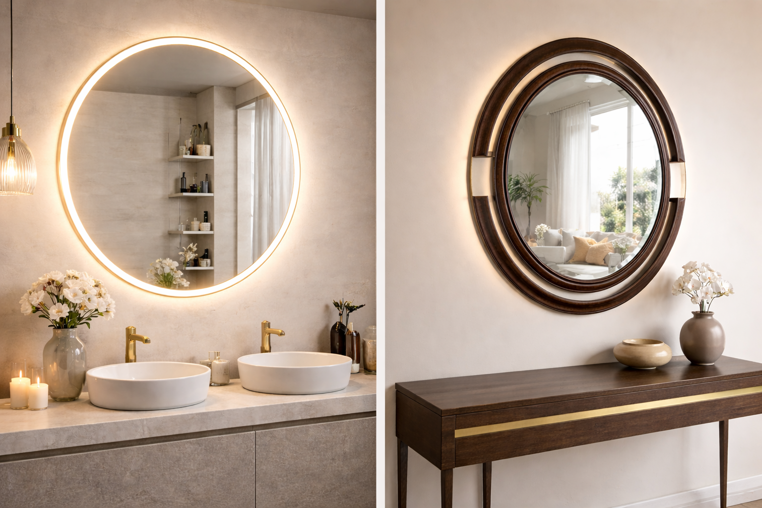 Round mirrors soften spaces, rectangular mirrors add structure, and abstract designs create a bold statement. Discover which silhouette complements your interior style best.